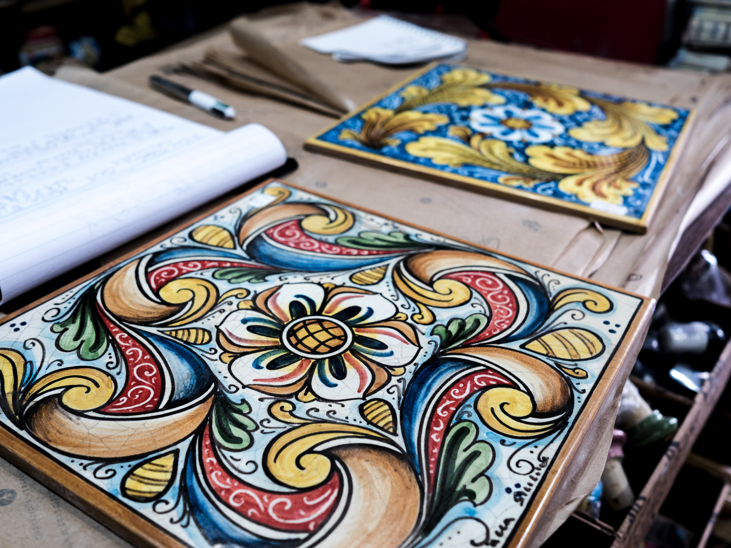 Fiori, petali, foglie dai mille colori. Queste maioliche siciliane sono create da un artigiano di Sciacca, che con la sua famiglia, crea ceramiche da generazioni. Sono tutte dipinte a mano e firmate dallo stesso autore.